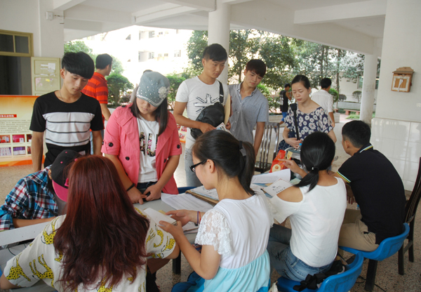迎新工作中,学校坚持“以人为本”的理念,在火车站、长途汽车站分别设立新生接待站,并配备迎新大巴接送新生及家长;在南北校区之间配备中转车辆,方便新生及家长在两校区往返;印制《2014级新生入学手册》,指导新生顺利办理入学手续,较快融入大学生活;在南北校区设立医疗服务工作点和警务点,提供医疗服务,应对可能出现的突发事件;安排工作人员指挥、协调各种车辆进入学校指定的停车点,以防出现拥堵现象;在南北校区分别设立青年志愿者服务站,组织老生志愿者对新生实行“一对一”服务。