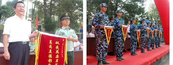 徐成钢向黄山武警支队赠送锦旗 领导为获奖单位颁奖