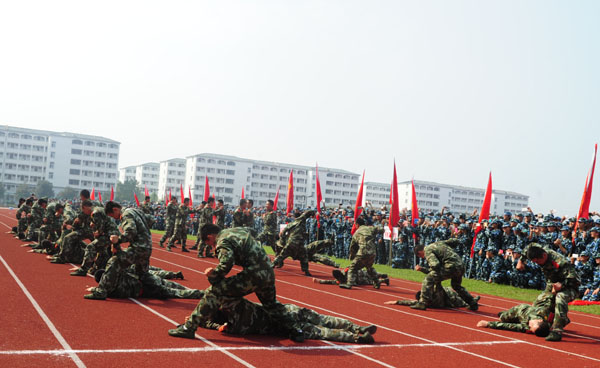 武警教官现场表演精彩擒敌拳,博得满场喝彩。