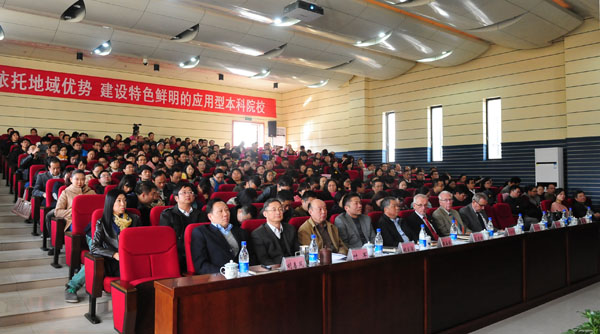 11月13日下午,我校在南区逸夫图书馆二楼报告厅举办“中德应用型高等教育与发展德国专家报告会”。校党委书记徐成钢,院长汪建利,副院长樊嘉禄,副院长胡家俊,党委副书记、纪委书记叶军,副院长胡善风出席会议。报告会由徐成钢主持。