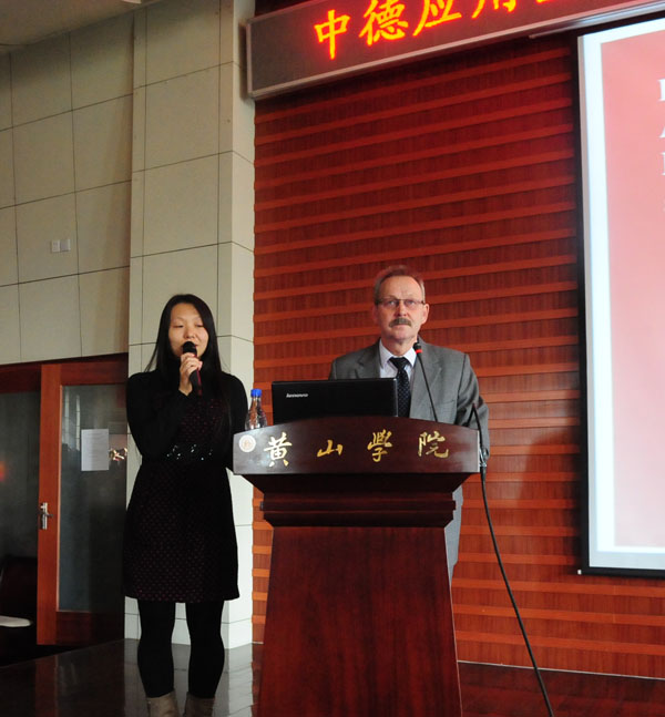 徐成钢对远道而来的德国专家表示热烈欢迎。他说,近日由安徽省教育厅和德国下萨克森州科学与文化部共同主办、我校和合肥学院联合承办的第七届中德应用型高等教育研究与发展研讨会顺利召开,在我校举办的专场报告会是研讨会的重要组成部分。我校今年成功获批为省级地方应用型高水平大学建设单位,为进一步推进转型发展,学校启动了“深化转型发展,建设地方应用型高水平大学”为主题的第五次教育思想观念大讨论活动。值此之际,我们邀请德国专家来校介绍德国应用型大学建设的先进经验,学习借鉴德国应用科学大学的办学模式和成功经验,对推进我校地方应用型高水平大学建设,培养高层次应用型人才具有重要指导意义。