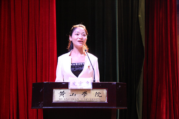优秀团员代表、旅游学院高龙梅同学代表获表彰者发言。
