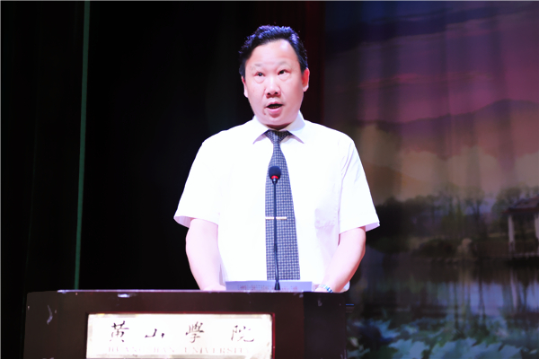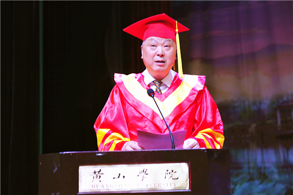 汪建利为各专业毕业生代表颁发学位证书、行拨穗礼。在热烈的掌声中,汪建利代表学校对同学们毕业表示衷心祝贺和诚挚祝福,并发表了热情洋溢的讲话。他表示,同学们生活在一个崇尚创新的伟大时代,科技进步日新月异,思想文化交融激荡,人类社会深刻转型,这既为今后的发展提供了广阔空间,也提出了前所未有的挑战。他勉励大家,一要胸怀梦想,勇于担当。能够与时代同进步,与祖国共奋进,把爱国主义作为始终高扬的光辉旗帜,在实现民族复兴的伟大进程中实现自己的人生价值。二要勤于学习,善于学习。牢固树立终身学习的理念,从实践中学习、从交往中学习、从挫折中学习、从社会中学习,学知识、学本领、学做人。三要沉下心来,踏实工作。继承发扬“黄山松”和“徽骆驼”精神,践行“教人求真、学做真人”的校训,立足本职,从点滴做起,在脚踏实地的奋斗中实现人生理想。四要热爱生活,宽容自信。懂得珍爱时间和生命,珍爱工作和生活,珍爱亲人和朋友,珍爱祖国和人民,豁达直面人生的高潮和低谷,宽容对待人生的失落和坎坷,自信成就美好未来。