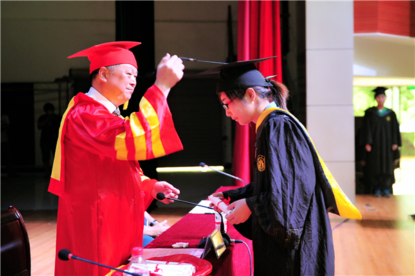校长汪建利为各专业毕业生代表行拨穗礼 汪建利寄语毕业生