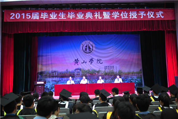 胡家俊宣读关于2015届优秀毕业生的表彰决定,胡善风宣读关于2015届毕业生准予毕业的决定和学位授予的决定,校领导向优秀毕业生代表颁发了荣誉证书。