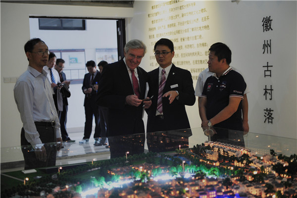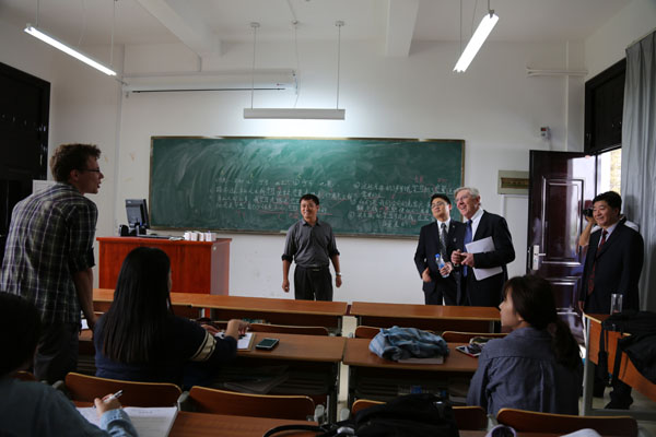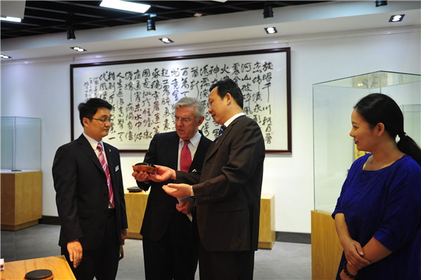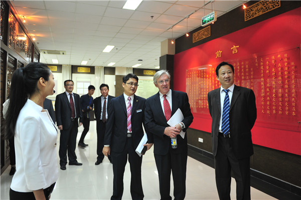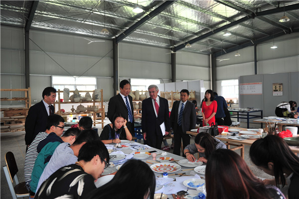 会后,安东尼•卡尔斯在副校长胡善风的陪同下参观了我校南区图书馆、徽州美术馆、陶瓷艺术馆、徽派建筑展馆、体育馆和学生食堂。