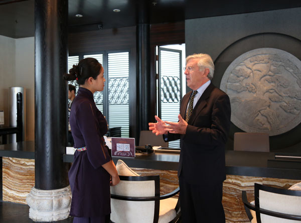 考察过程中,安东尼•卡尔斯还赴旅游学院实践教学基地高尔夫酒店、徽州糕饼博物馆进行现场考察。双方就校企合作、实践教学环节组织、联合培养等方面进行广泛交流。同时安东尼•卡尔斯现场访谈了在高尔夫酒店进行专业实践学习的中法合作瓦岱勒(Vatel)酒店管理专业学生。