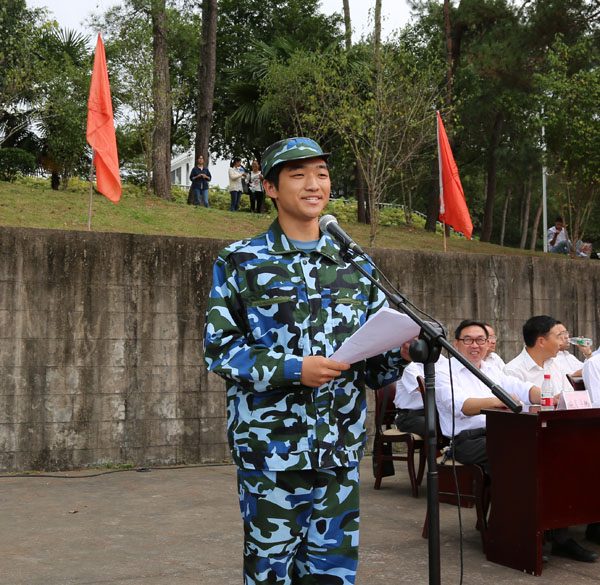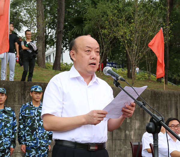 汪建利在大会上发表讲话。他代表学校向2015级新同学的到来表示衷心的祝贺和热烈的欢迎,并向长期支持我校军训工作的武警黄山市支队的官兵们致以崇高的敬意。在介绍学校历史发展和办学情况后,汪建利寄语新生:要立德修身,争做美德的传承者;要勤学实践,善做智慧的践行者;要求实创新,勇做时代的引领者。他希望同学们把军训中的艰苦奋斗精神保持下去,带到今后的学习、工作、生活中,珍惜宝贵的校园时光,发愤学习,努力掌握现代化科技知识,积极参加社会实践,成为一名优秀大学生,成为祖国建设的有用之才。