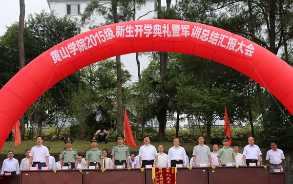 学校有关部门、院部负责人,武警黄山市支队部分官兵以及2015级全体新生参加大会。