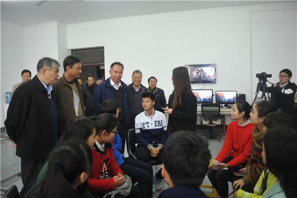 程艺一边兴致勃勃地察看学校的文化墙、学生宿舍、学生食堂、学生社团活动室、图书阅览室,观看同学们的板报和绘画作品,一边和汪建利以及志愿者们交谈询问有关情况。在得知我校志愿者自2012年9月实施支教活动以来,志愿者们寒来暑往,风雨无阻,从未间断,有团队接力,有自编教材,有经费保障,有研究拓展,项目合作走向常态化、科学化,成为学生认知社会和提升实践能力与综合素质的重要窗口与平台,通过支教使得学生精神面貌、艺术素养和课堂气氛发生了可喜变化,程艺十分高兴,他同志愿者们一一握手,高度赞扬同学们的支教义举,充分肯定支教活动的重要意义和实际成效,并对今后的支教活动提出了新的更高的要求,对大学生成长成才提出了指导性意见。他鼓励同学们带着问题与思考到支教实践中锻炼实践能力和自我管理能力,磨练意志,增长才干,在实践中锤炼坚强意志,提升素质。他希望学校进一步做好总结与推广,提升应用型人才培养水平,增强学生适应社会和创新创业的能力。