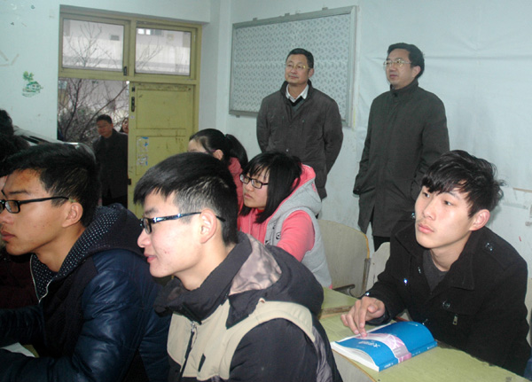 2月22日是我校新学期开课第一天。上午,校党委书记汪枫,校长汪建利,副校长胡家俊,党委副书记、纪委书记叶军,副校长胡善风在办公室、教务处、人事处等部门负责人的陪同下深入教学一线,对南北校区各教学点的上课情况进行检查。