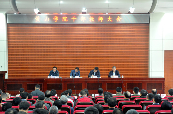 4月7日下午,我校召开校级领导班子和领导干部2015年度综合考核干部教师大会。省委第二十考核组组长、省委教育工委原常务副书记、省政协教科文卫体委员会副主任高开华,副组长、省委教育工委副书记王佩刚和考核组全体成员出席会议。学校领导班子成员、全体中层干部、教职工代表(省级以上“两代表一委员”,民主党派市级以上主委,学校教代会执委,副高以上职称人员等)、学生代表参加大会。党委书记汪枫主持大会。