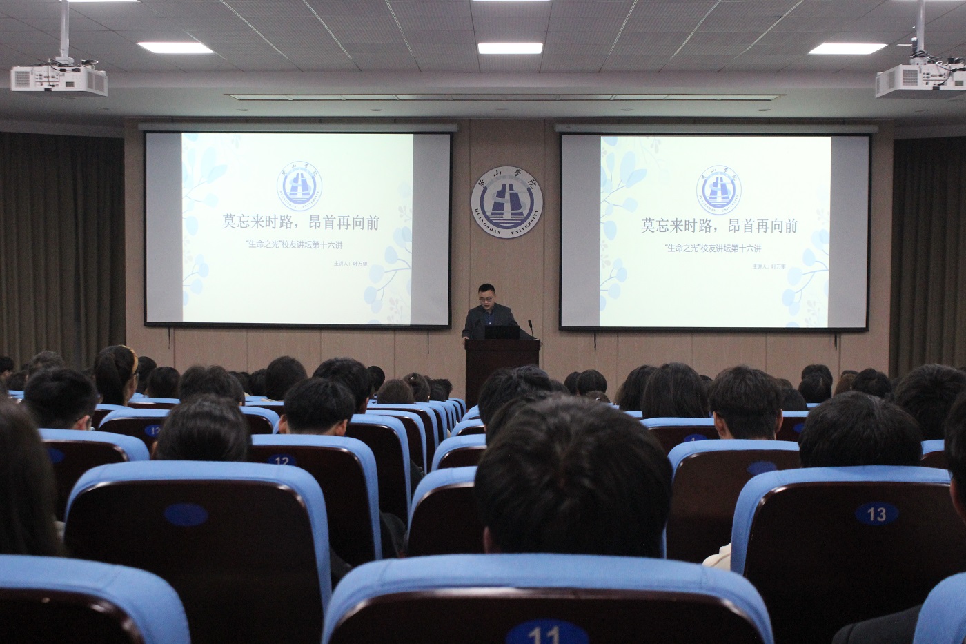 3月1日晚,生命与环境科学学院在率水校区文端楼一楼报告厅举办 “生命之光”校友讲坛第十六讲。此次讲坛邀请了2024年毕业于生命与环境科学学院林学专业的校友叶万里担任主讲人,讲坛以“莫忘来时路,昂首再向前”为主题,分享个人经历与感悟。讲坛由该院党委副书记万志兵主持,林学和园林专业200余名师生参加。