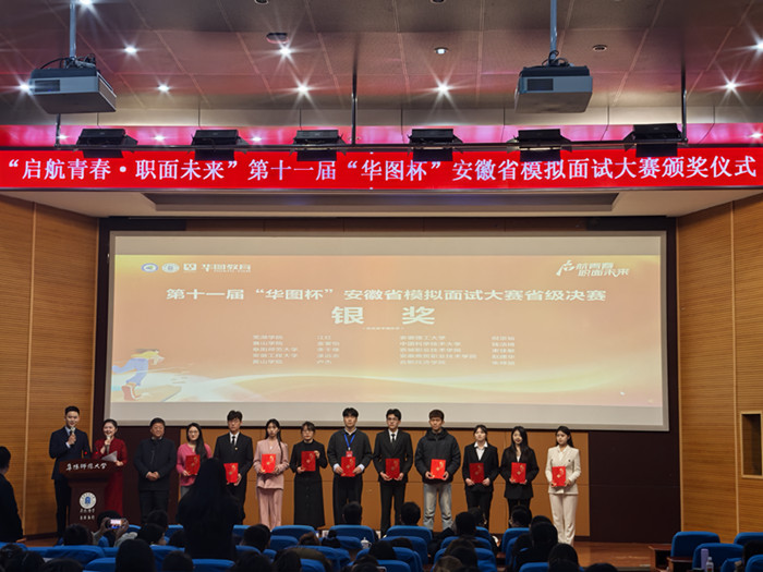 “启航青春·职面未来”第十一届“华图杯”安徽省模拟面试大赛决赛于3月6日至7日在阜阳师范大学举办,我校经济管理学院学生金紫怡、旅游学院学生卢杰在决赛中表现突出,双双荣获银奖,学校荣获优秀组织奖。