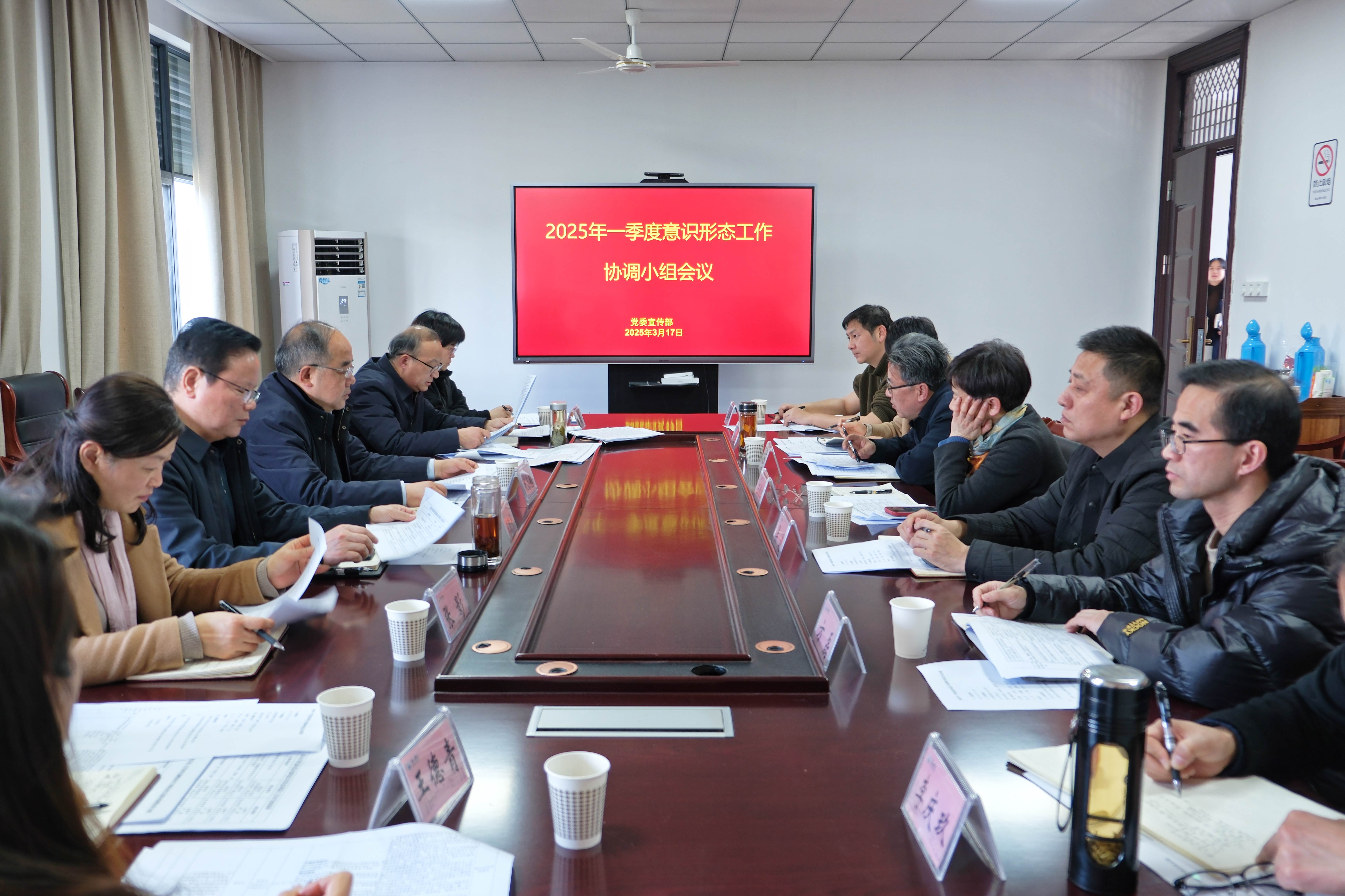 为防范化解学校意识形态领域风险,进一步强化意识形态工作责任制落实,3月17日,我校在文昌楼北楼409会议室召开2025年一季度意识形态工作协调小组会议。校党委委员、副院长、宣传部长张小明,学校意识形态工作协调小组成员单位负责人参加会议。张小明主持会议并讲话。
