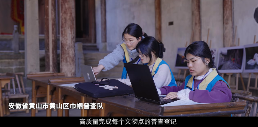 从盛夏酷暑到数九寒冬,团队足迹遍布黄山区山野村落。烈日下,他们攀爬古建梁架测绘数据;风雪中,他们穿梭遗址群核对文献。教师始终与学生并肩一线,以身作则,言传身教,共同完成文物普查工作。