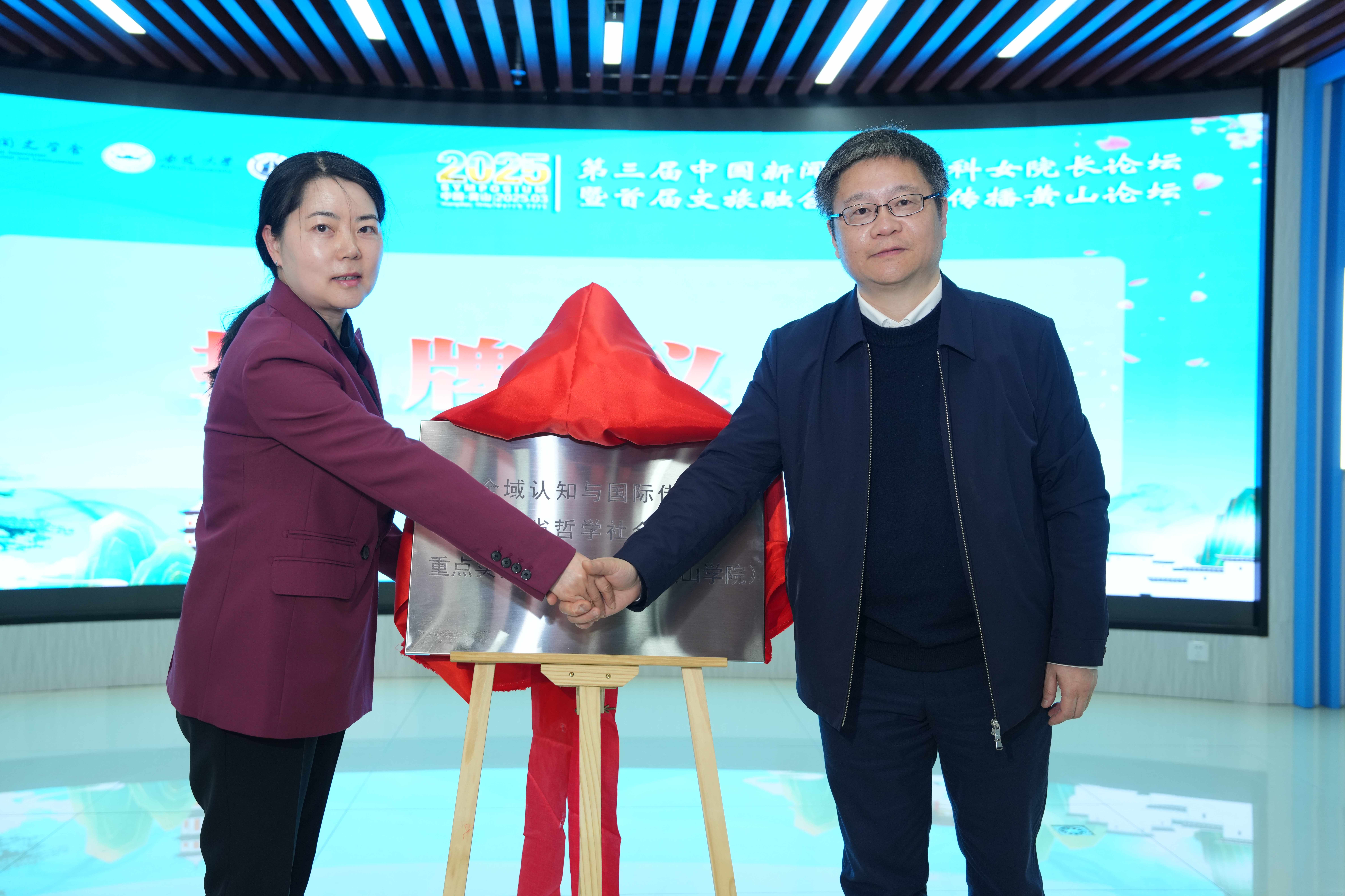 钱海、姜红共同为全域认知与国际传播安徽省哲学社会科学重点实验室协同基地揭牌。
