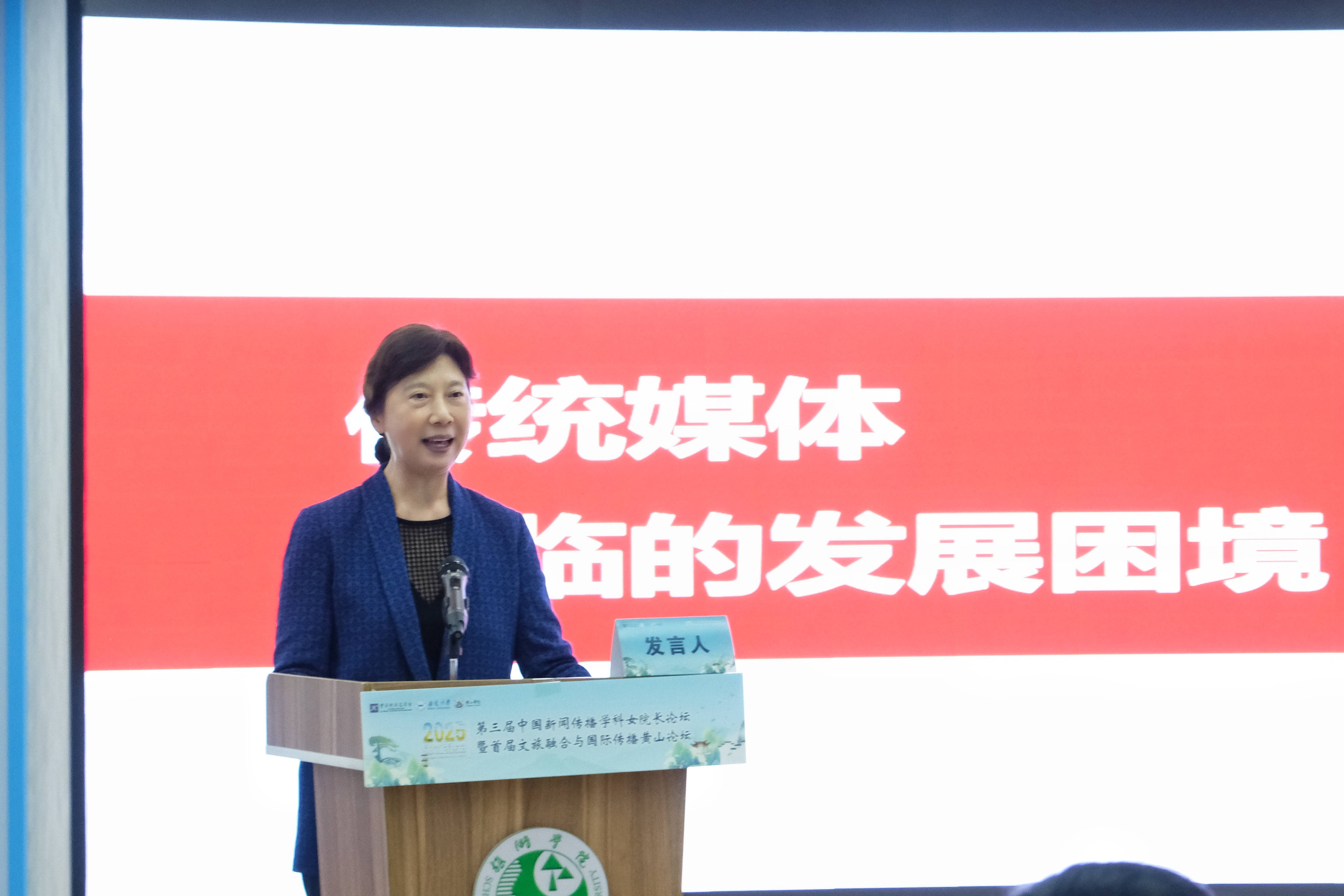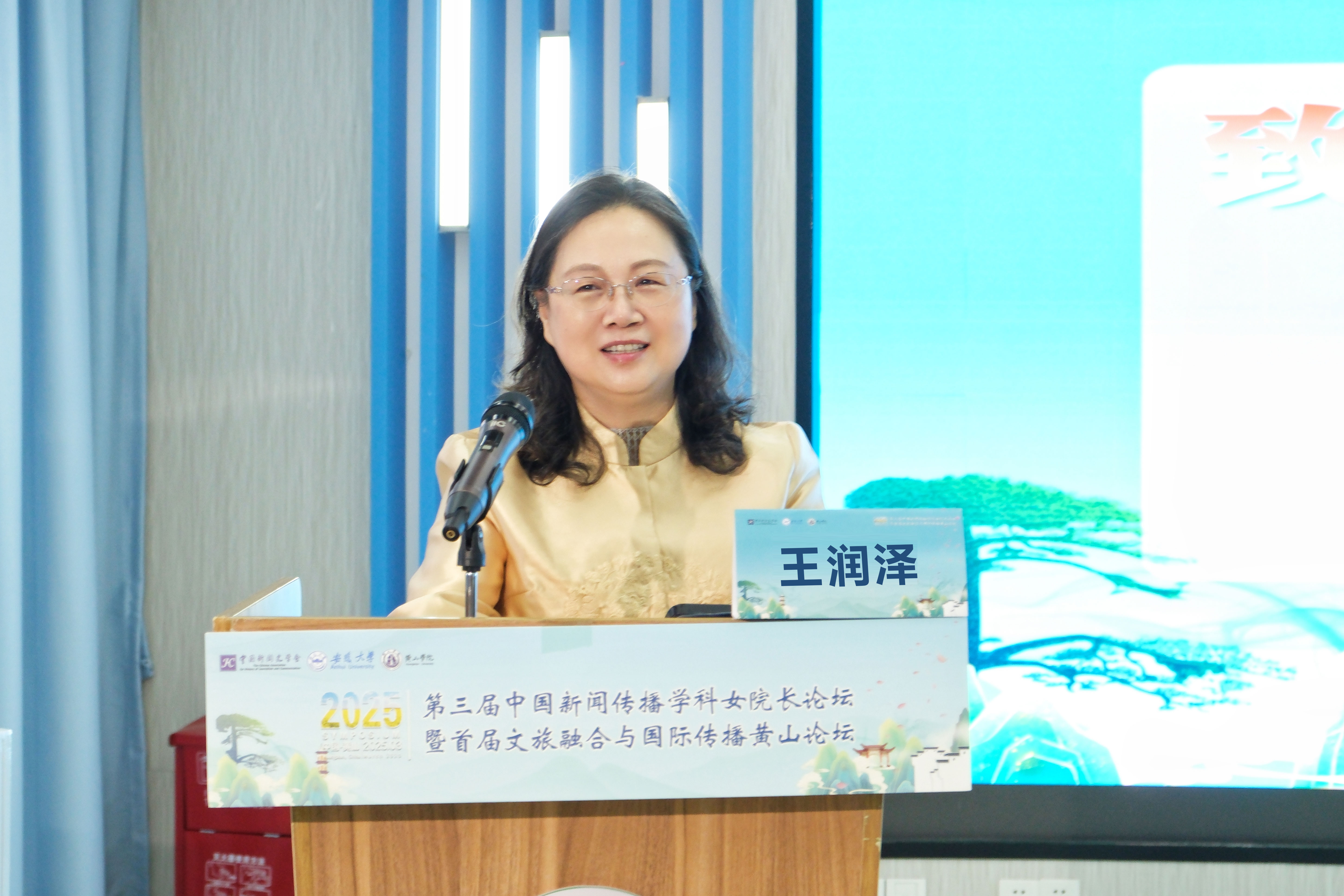 主旨演讲结束后,举办了第三届中国新闻传播学科女院长圆桌论坛和首届文旅融合与国际传播黄山论坛,分别由王润泽和安徽大学新闻传播学院院长葛明驷主持。论坛上,各位专家学者就学科建设、人才培养、学术研究、国际传播和文旅融合等方面进行了交流与探讨。