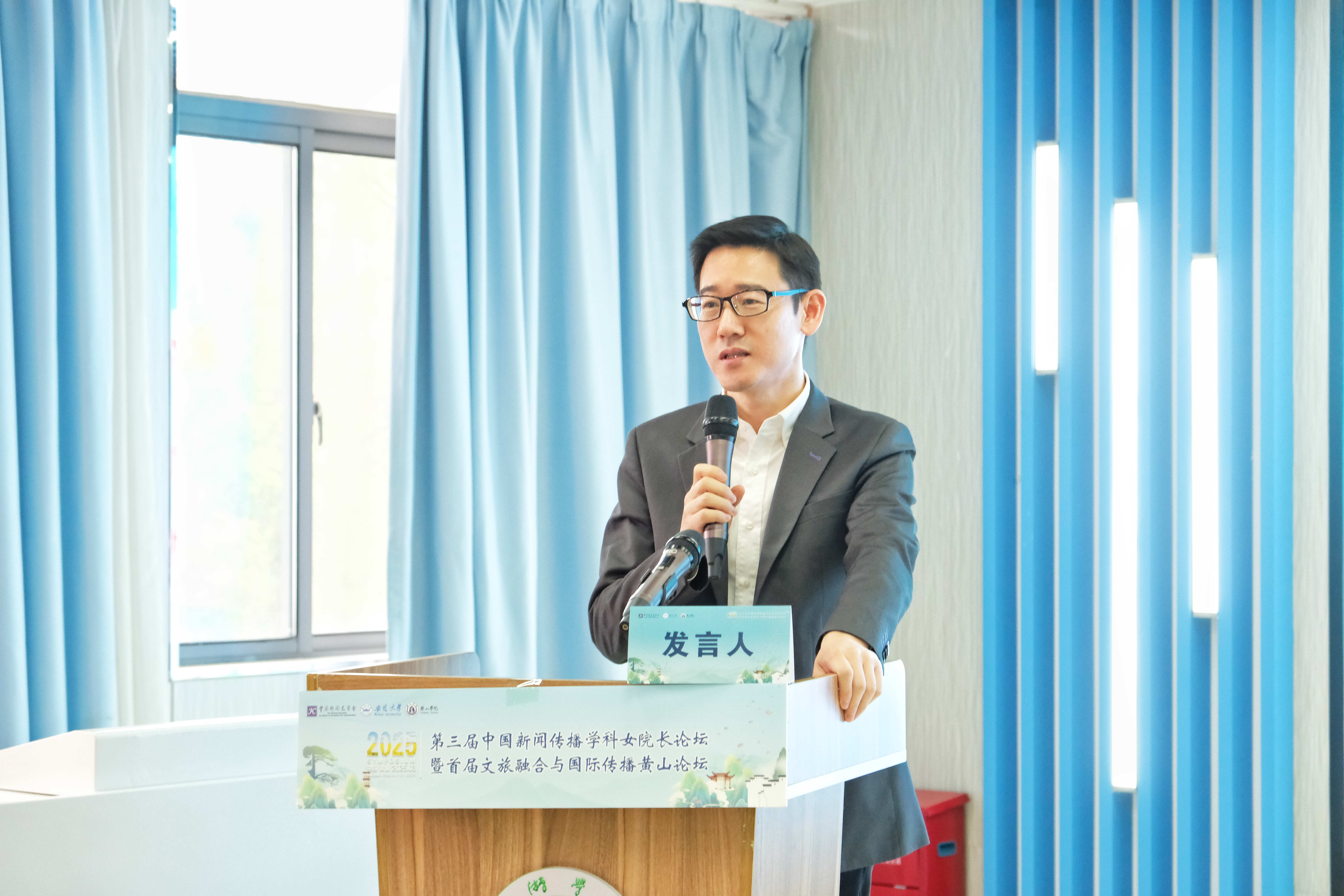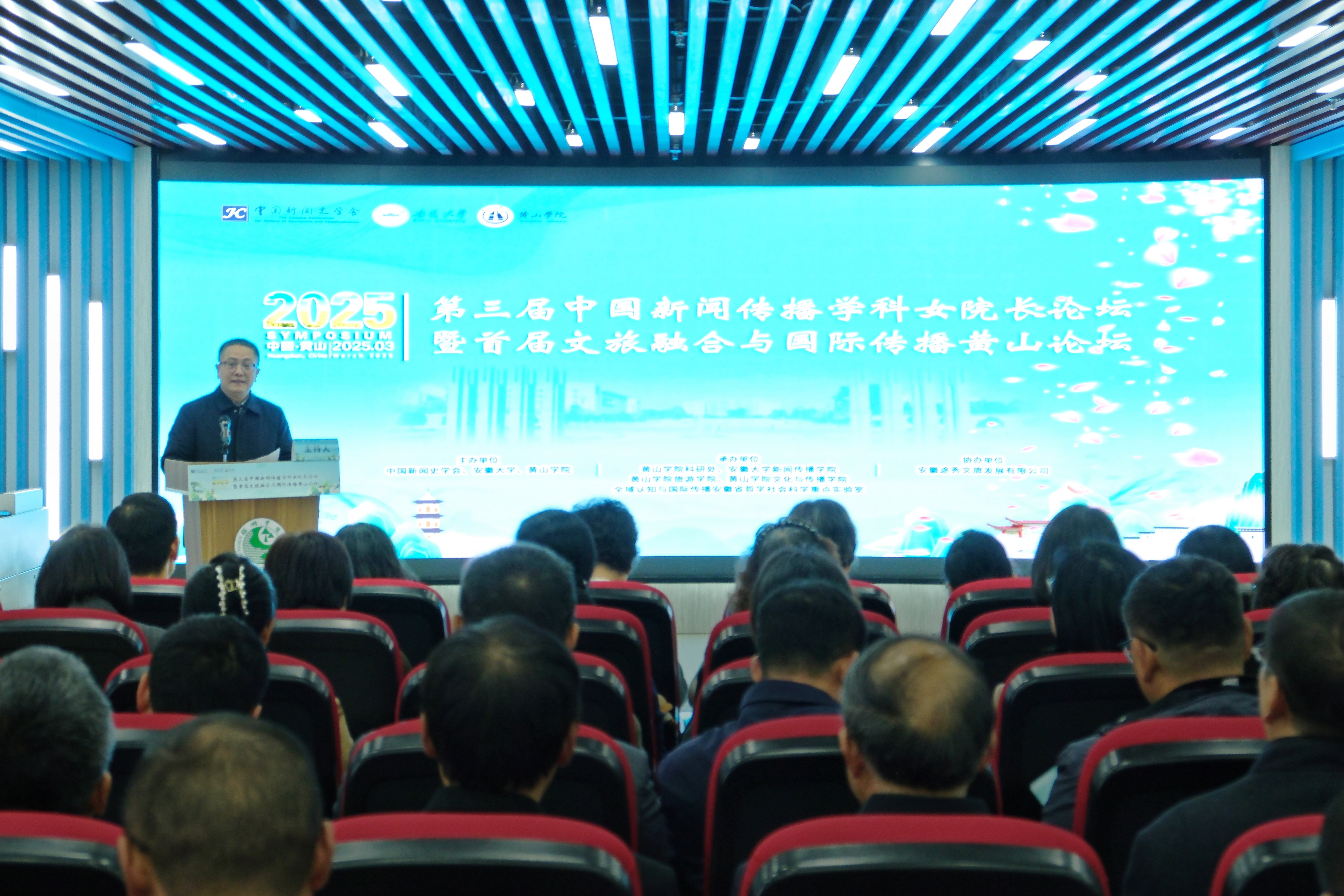 3月29日上午,第三届中国新闻传播学科女院长论坛暨首届文旅融合与国际传播黄山论坛在我校率水校区文思楼五楼报告厅召开。校党委书记李铁范,安徽大学党委副书记钱海,校党委副书记、院长李庆宏,副院长姜红,中国新闻史学会名誉会长、中国人民大学新闻学院副院长、教授王润泽,人民日报社安徽分社社长吴焰,光明日报安徽记者站站长常河,安徽省委宣传部对外联络推广处处长吴晓辉等来自学界、业界、政界与企业界30余名代表出席开幕式,共同见证论坛开幕。开幕式由李庆宏主持。
