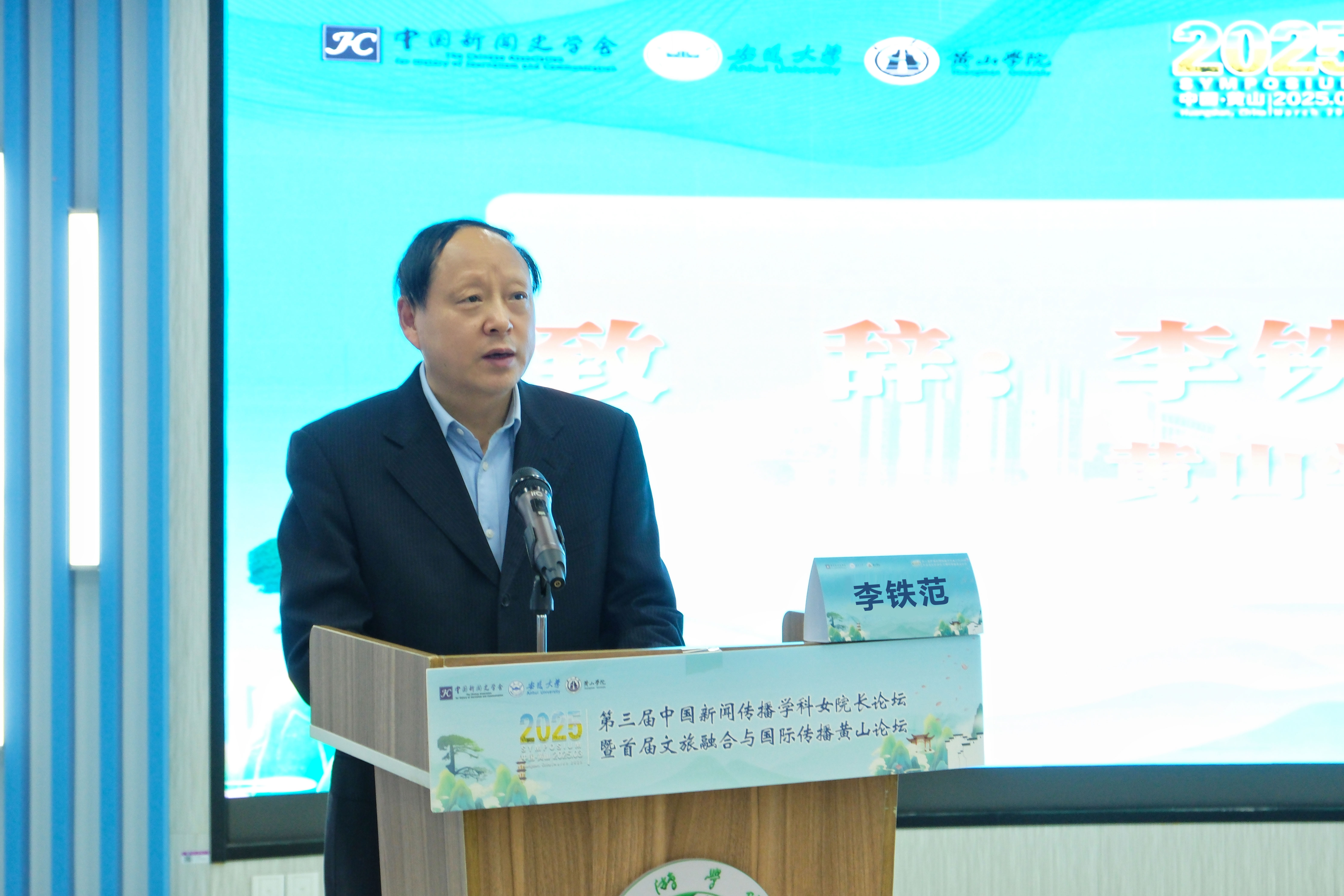 李铁范在致辞中代表博业体育(中国)官方网站-登录入口向各位领导和嘉宾的到来表示热烈欢迎和衷心感谢,并介绍了我校基本情况。他指出,此次论坛不仅是黄山与全国新闻传播学科女院长、著名学者共襄盛举的契机,更是响应国家加强国际传播能力建设的重要举措。近年来,学校聚焦服务安徽省“三地一区”战略定位,积极融入长三角一体化教育格局,深化科研创新,促进教育链、人才链、产业链、创新链有机衔接、协调发展,打造具有品牌影响力的学科群,本次论坛聚焦“文旅融合与国际传播”,与我校在“文化-旅游-传播”三位一体的学科生态建设不谋而合,希望各位专家学者在“文旅融合与国际传播”等领域传经送宝,分享学术卓见。他诚邀各位领导和专家,在会议期间或者未来,能到博业体育(中国)官方网站-登录入口考察指导,多为学校发展提宝贵意见建议。