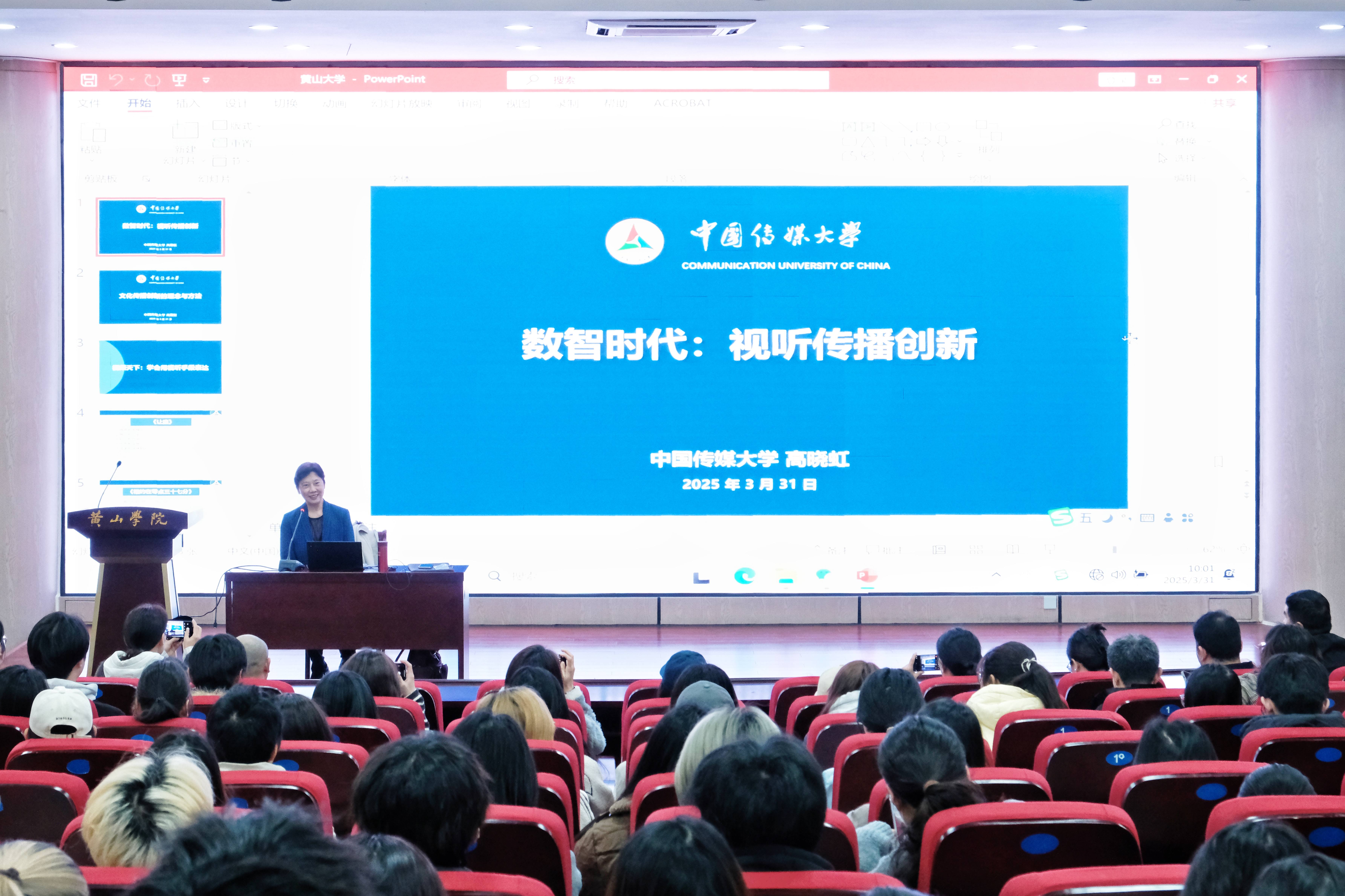 3月31日上午,中国传媒大学新闻传播学部部长、中国传媒大学教授高晓虹应邀在我校文端楼二楼报告厅作《数智时代:视听传播创新》学术报告。报告会由我校副院长姜红主持,全校师生百余人参加报告会。