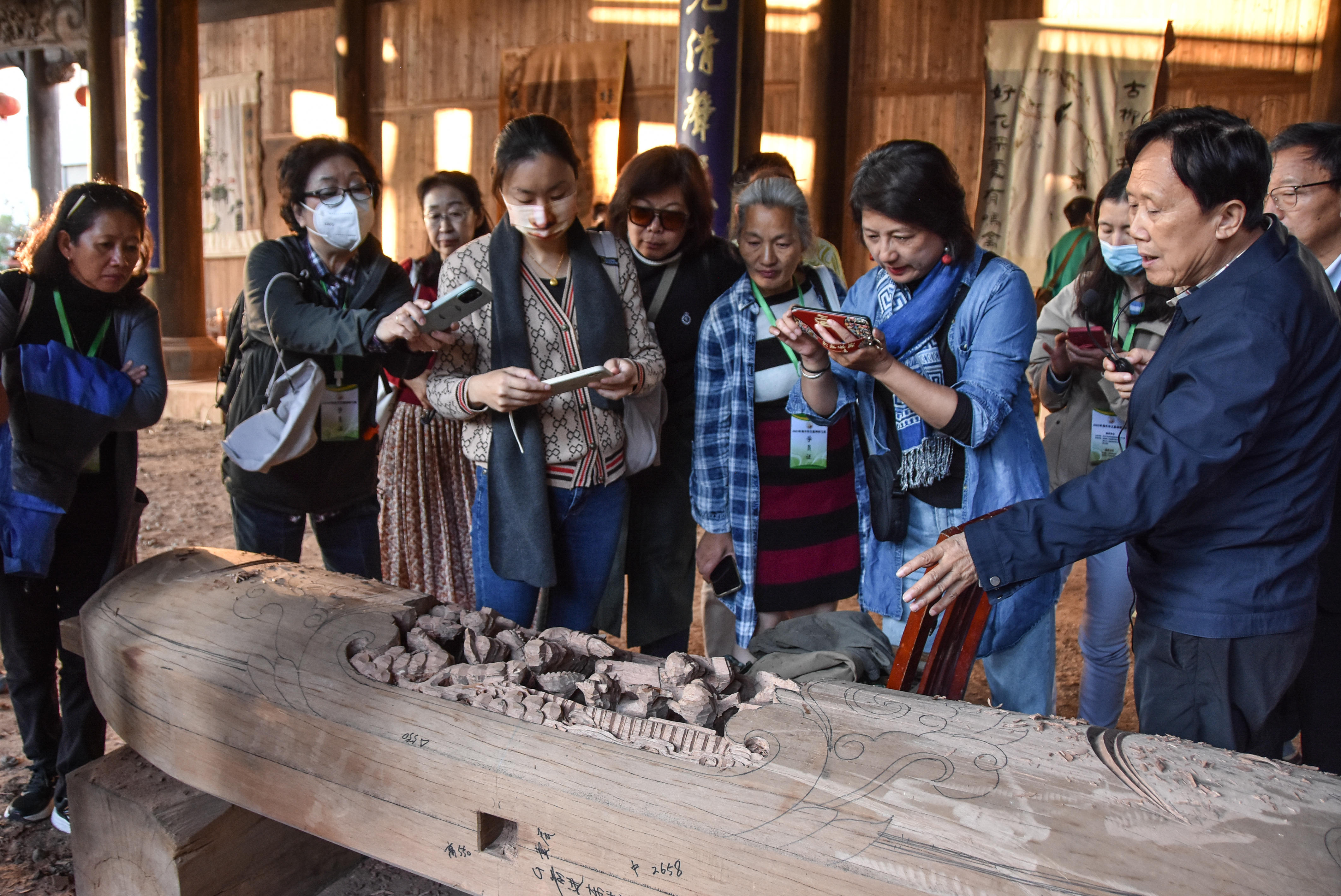 穿行于棠樾牌坊之下,学员们注视着这些历经岁月沧桑的巨大“身躯”,聆听着“忠孝节义结孝忠”七座牌坊背后情感交织的动人故事和深厚的家国情怀,感受着徽州文化和程朱理学的伦理内涵。畅游在鲍家花园,欣赏神态万千的树桩盆景,学员们叹为观止。在黄山徽匠园林古建有限公司,学员们了解了徽州木雕文化的悠久历史,观摩师傅们娴熟流畅的雕刻工艺,感悟非遗传承背后的匠心精神。