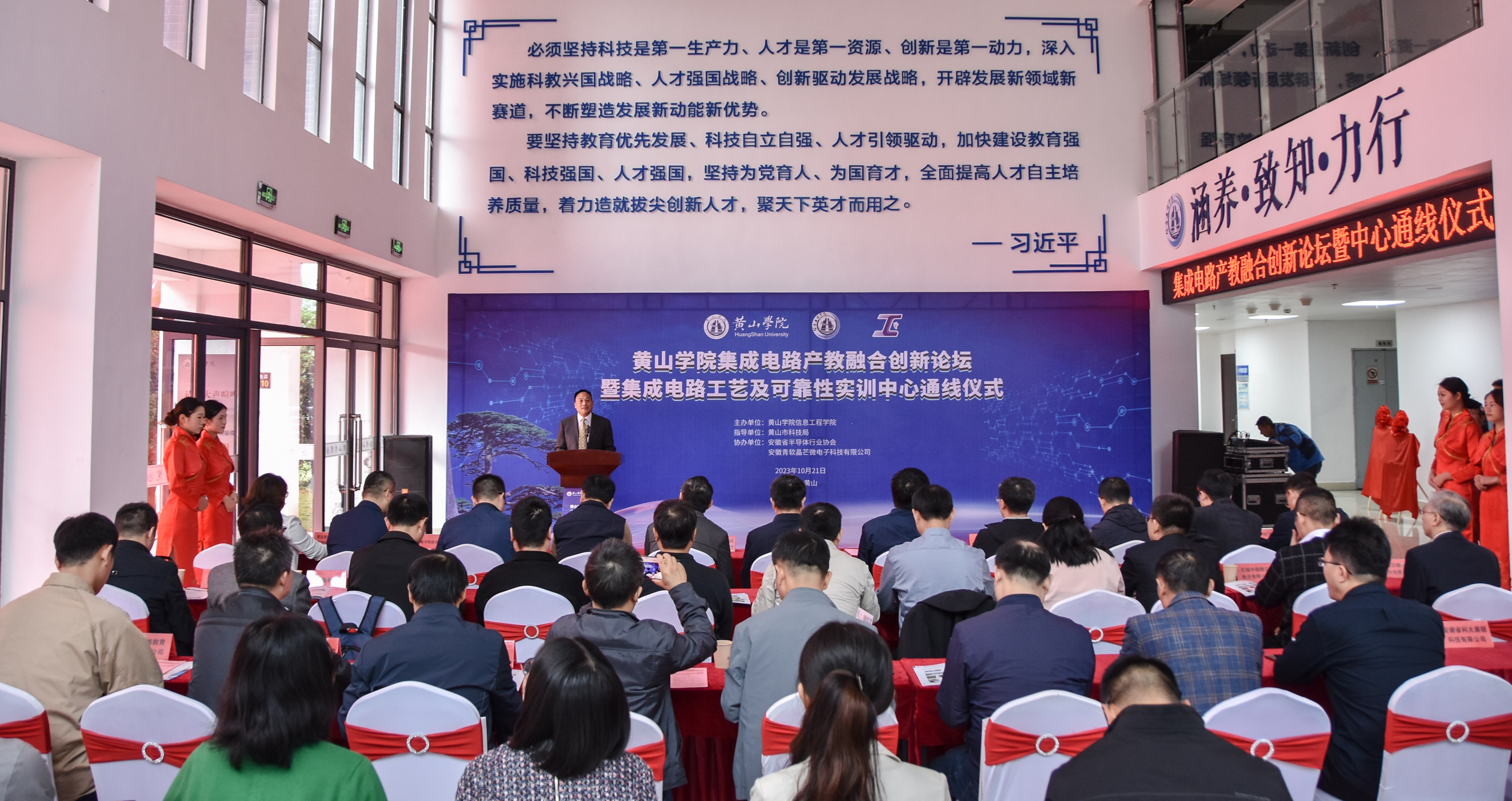 10月21日上午,博业体育(中国)官方网站-登录入口信息工程学院举行集成电路产教融合创新论坛暨集成电路工艺及可靠性实训中心通线仪式,校党委副书记、院长李庆宏,黄山市科技局党组书记、局长田雨润,安徽省半导体行业协会理事长陈军宁,青岛青软晶尊微电子科技有限公司总经理张侠出席仪式并致辞。信息工程学院班子成员及骨干教师参加仪式。