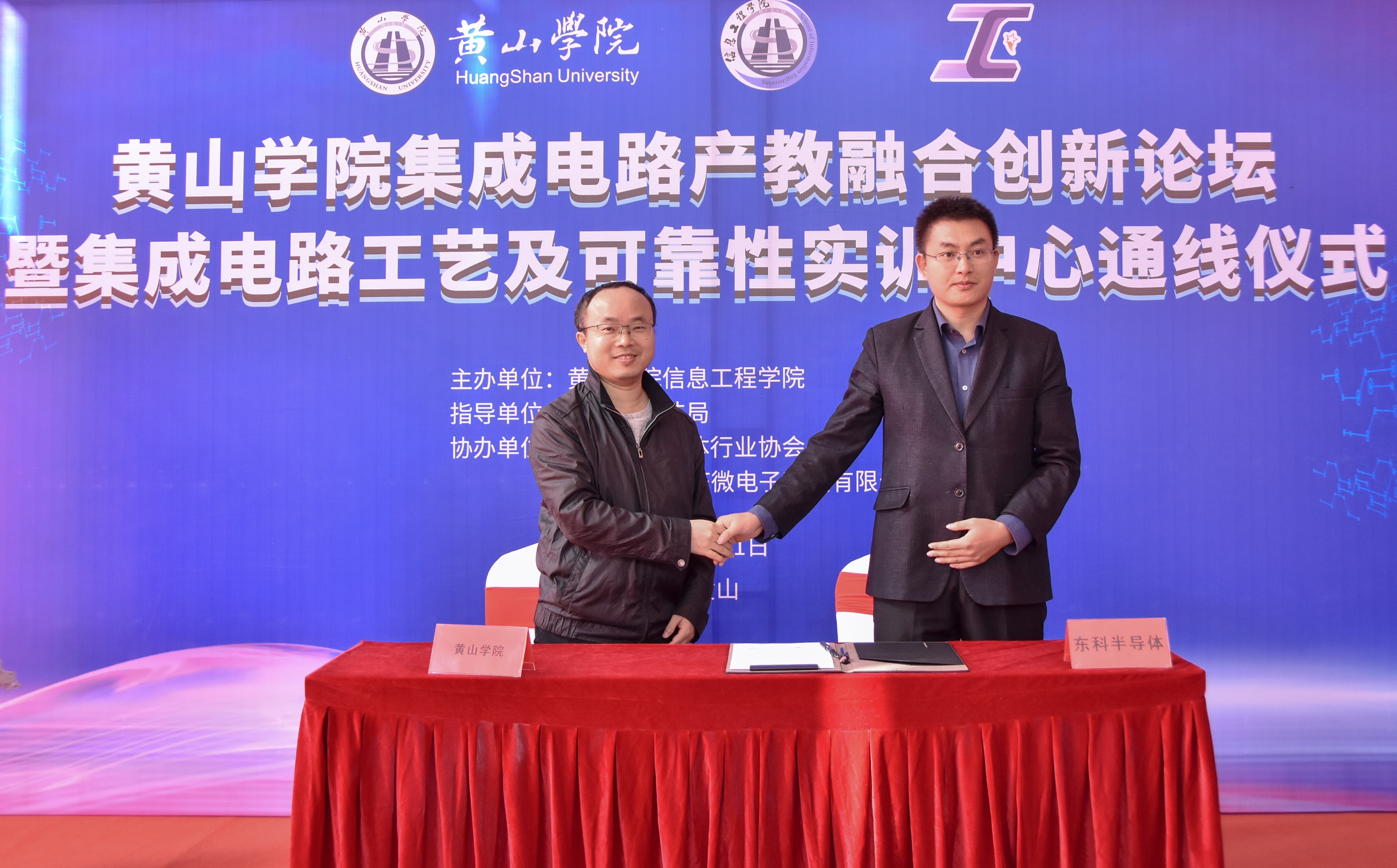 仪式上,李庆宏、陈军宁、张侠分别为集成电路实训中心和集成电路产业学院揭牌,并为集成电路实验实训中心通线剪彩。我校信息工程学院院长吕海江与黄山芯微、东科半导体、中微腾芯、青软晶尊等联合共建企业分别签署了产业学院合作共建协议。