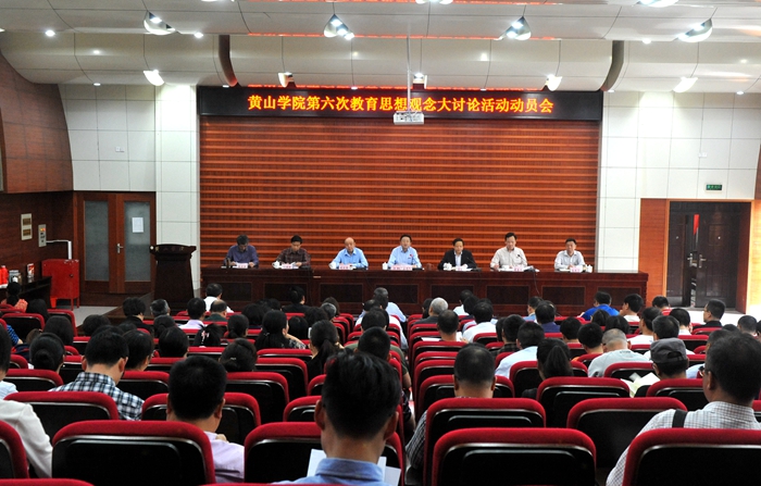 学校第六次教育思想观念大讨论活动的主题是“坚持‘以本为本’,推进‘四个回归’,落实立德树人根本任务,深化转型发展,建设地方应用型高水平大学”,大讨论活动从五月中旬开始持续到今年年底,共分三个阶段:第一阶段是动员学习阶段,历时一个月,主要任务是制定活动实施意见,启动教育思想观念大讨论活动。同时邀请校内外专家、领导作辅导报告,进行大讨论学习和动员;第二阶段是调研讨论阶段,历时四个月,主要任务是深入开展调研,对标对表,对存在的问题和差距,逐条归纳、整理和分析,制定并落实行之有效的工作措施;第三阶段是总结巩固阶段,历时两个月,主要任务是总结梳理大讨论活动成果。
