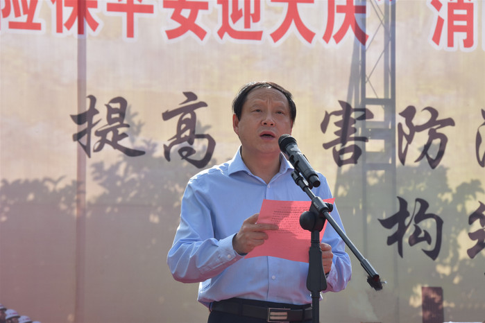 李铁范在启动仪式上讲话,他指出,今年适逢新中国成立70周年,做好各项安全工作尤为重要。举行“防灾减灾救灾”应急疏散演练暨“防风险保平安迎大庆”消防安全检查专项行动,是对学校安全措施的一次再落实,对学校师生员工安全防范意识的一次再强化,对提高大家安全逃生技能的一次实战演练和培训,意义十分重大。他要求,一要高度重视防灾减灾工作,增强防灾减灾意识;二要认真学习防灾减灾知识,提高避灾自救技能,最大限度地减轻自然灾害对全校师生生命财产造成的损失;三要统筹协调,齐心协力,共同推动我校防灾减灾救灾和其他安全工作再上新台阶新水平。