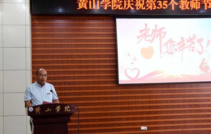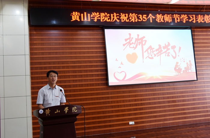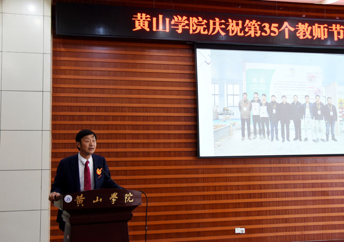 李铁范在讲话中代表学校向辛勤耕耘在教学、科研、管理和服务一线的全体教职员工致以节日的祝福和诚挚的问候,向受表彰的第45届世界技能大赛获奖个人和团队表示热烈的祝贺,向为学校各项事业发展付出智慧和心血的广大师生员工表示衷心的感谢。他指出,要贯彻落实学校第三次党代会确定的“3535”发展思路,推进人才强校战略,实现“黄山大学梦”,必须充分认识人才工作的极端重要性,牢固树立人才强校主战略;必须充分认识人才工作的极端艰巨性,全力打赢人才引进培养攻坚战;必须充分认识机制创新的极端必要性,努力打造人才成长软环境。他强调,要不忘初心,立德树人,做学生人生的引航者;要以学启人,厚积薄发,做文化知识的传播者;要锐意改革,勤学善思,做笃学创新的力行者;要勤勉敬业,以身垂范,做爱校乐教的奉献者。他希望全体教师弘扬高尚师德,潜心教书育人,不忘初心、砥砺前行,持续发力、久久为功,以优异的成绩向新中国成立七十周年献礼。