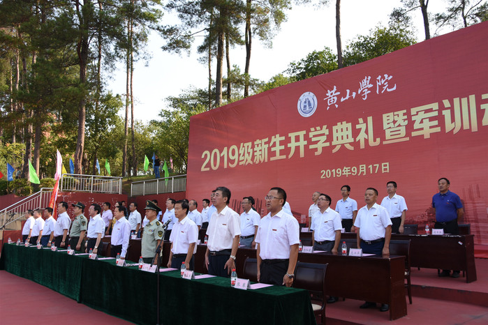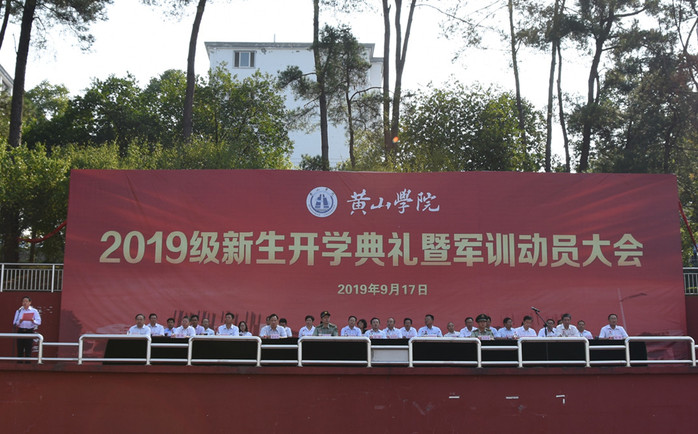 迎五湖四海莘莘学子,盼春华秋实美好明天。9月17日上午,我校2019级新生开学典礼暨军训动员大会在学校第一田径场举行。校党委书记汪枫,党委副书记、校长李铁范,副校长胡善风,党委委员、副校长刘英旺,党委委员、副校长张德学,党委委员、纪委书记陈家祥,黄山军分区副司令员赵启发,武警黄山市支队政委汪昌喜出席大会。学校有关部门、各学院负责人、武警黄山市支队官兵以及2019级全体新生参加了大会。大会由刘英旺主持。