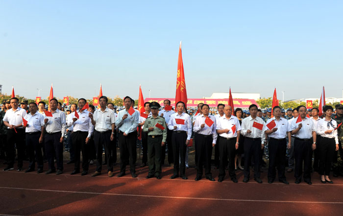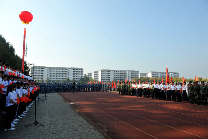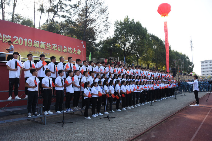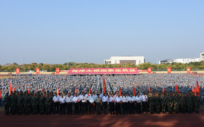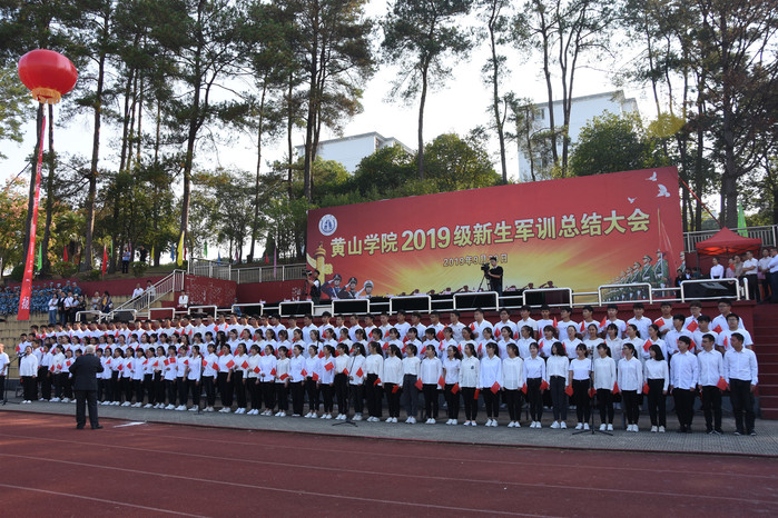 颂祖国华诞,歌盛世辉煌。在举国上下热烈庆祝中华人民共和国成立70周年、全校上下扎实开展“不忘初心、牢记使命”主题教育之际,为落实立德树人根本任务,讴歌伟大的祖国、伟大的党、伟大的人民,进一步激发广大师生干事创业的激情, 9月29日上午,我校在率水校区第一田径场举行“军民同唱一首歌”活动。校领导汪枫、李铁范、胡家俊、胡善风、刘英旺、陈家祥,武警黄山支队政委汪昌喜出席活动。全校2019级新生、指导军训的武警教官共4000余人参加合唱活动。
