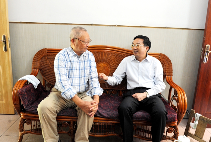 9月27日、29日,党委书记汪枫、党委副书记胡家俊在组织部、办公室、离退休工作处等部门负责人的陪同下,分别走访慰问我校离退休英雄模范老教师郝金城、李尚才、夏曰鼎、汪柏树、金家恒,向他们致以崇高的敬意和诚挚的问候。