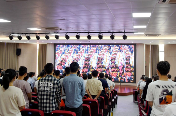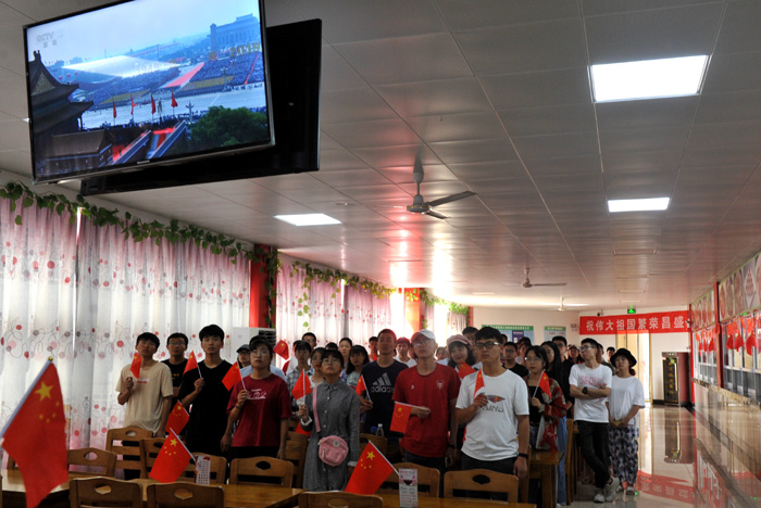 10月1日上午,庆祝中华人民共和国成立70周年大会在天安门广场隆重举行,中共中央总书记、中华人民共和国主席、中央军委主席习近平发表重要讲话,随后举行了盛大的阅兵式和群众游行。我校组织师生在文端楼二楼报告厅、一食堂三楼教工餐厅、部分教室和学生宿舍通过电视、网络集中收看庆祝大会现场直播,共同见证伟大祖国的繁荣与富强。