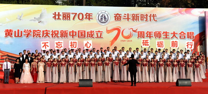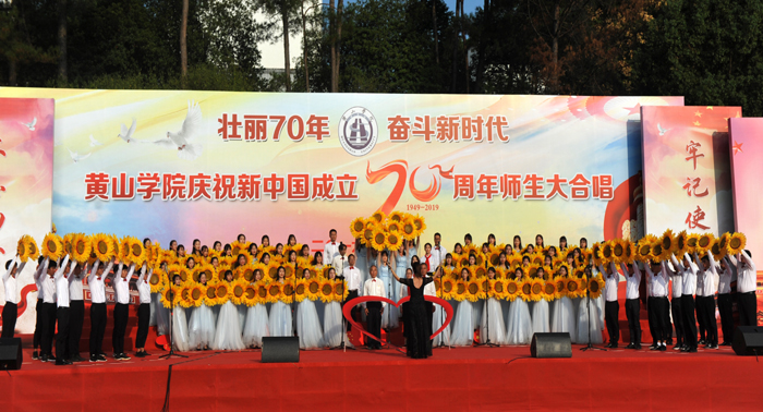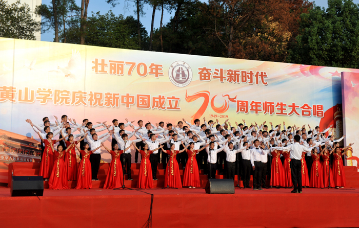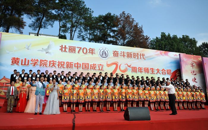 庆祖国华诞,歌盛世辉煌。10月9日下午,我校在率水校区田径场隆重举行“壮丽70年,奋斗新时代”师生大合唱比赛,庆祝中华人民共和国成立70周年,讴歌新中国70年来的光辉历程和伟大成就。校党委书记汪枫,党委副书记、校长李铁范,副校长胡善风,党委委员、副校长刘英旺,党委委员、副校长张德学,党委委员、纪委书记陈家祥与近万名师生一起观看了演出。