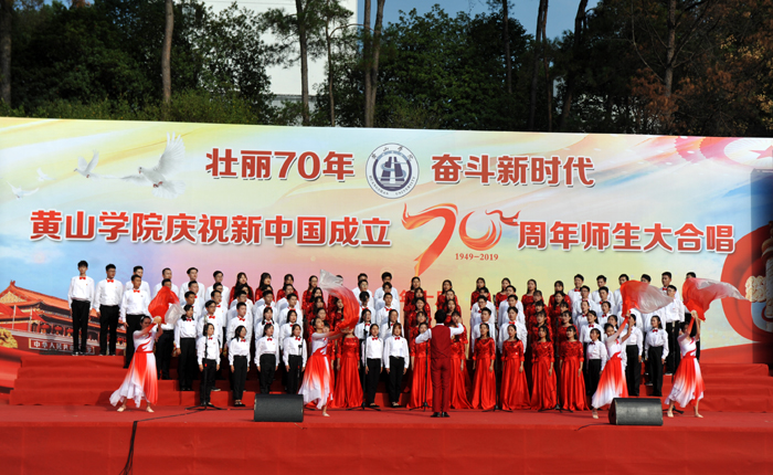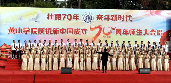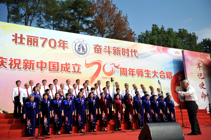 离退休教职工代表队率先登台,他们用昂扬的斗志和饱满的精神演唱了《四渡赤水出奇兵》《走进新时代》。紧接着,15支代表队用一首首耳熟能详、积极向上的歌曲,礼赞新中国70年取得的伟大成就,倾诉他们对伟大祖国的无比热爱和对党的深厚感情。