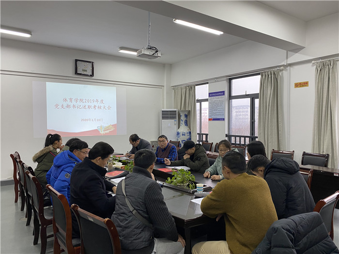 元月10日,体育学院在会议室召开2019年党支部书记述职评议考核工作会议。该院领导、院党总支委员、党支部委员、科级干部等参加了会议,会议由该院党总支书记杨和健主持。