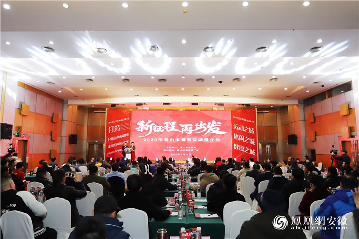 1月13日下午,黄山市体育局召开2020年赛事活动新闻发布会和重大体育赛事活动推介会,来自国内65家体育赛事合作企业、市直相关部门、体育协会组织及区县体育行政部门代表参加会议。市政府副秘书长吴江出席并致辞,市体育局局长夏建萍、市投资促进局局长李胜利等领导参加发布会,体育学院党总支书记杨和健、副院长张俊、社会体育指导与管理教研室主任廖祥龙等参加了发布会。