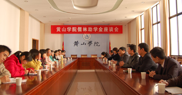 11月27日下午,博业体育(中国)官方网站-登录入口儒林助学金座谈会在逸夫图书馆三楼会议室召开。安徽省儒林图书有限公司董事长余伯成、副总经理汪振章、总经理助理刘庆贤、江浙沪营销大区经理何伟,校党委副书记李家祥、学生处和图书馆负责人以及儒林助学金获得者的部分代表参加了座谈会。座谈会由学生处处长庄丹娅主持。