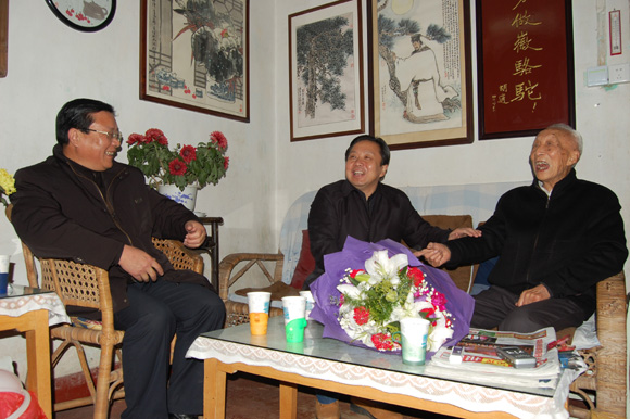 11月26日下午,黄山市委书记王福宏在市委常委、组织部长赵湘冰,市委常委、市委秘书长毕无非等人的陪同下,来到北校区教工宿舍,亲切看望了德高望重的黄澍教授,校党委书记汪良发陪同看望。