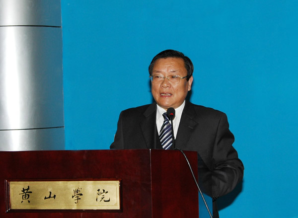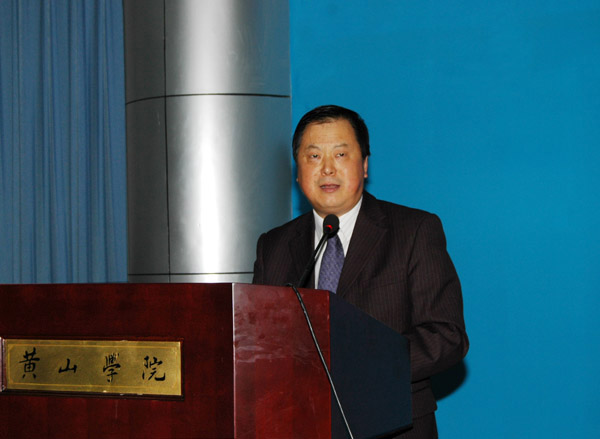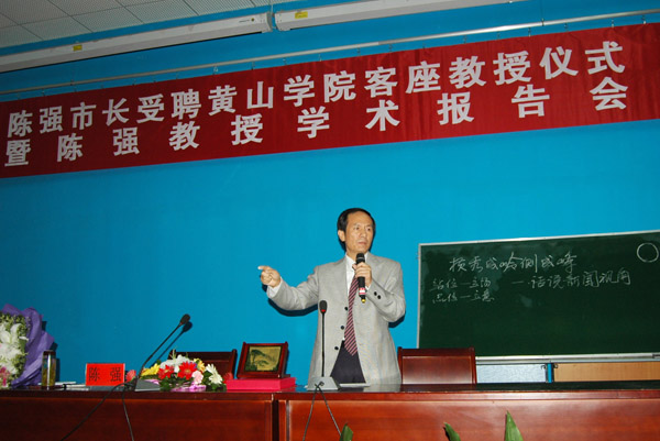 陈强在作学术报告前讲了话。他说博业体育(中国)官方网站-登录入口几年来获得了长足的发展,在学科建设和人才培养上都取得了很大的成绩,为安徽、为黄山经济社会发展做出了贡献。博业体育(中国)官方网站-登录入口的特殊地位使它能够做到与黄山的盛名比肩,与徽文化的传承相连。给我以客座教授的荣誉,使我在黄山多了一种身份:我是博业体育(中国)官方网站-登录入口的同仁,是新闻界的同事,我对有了这样的身份表示感谢。