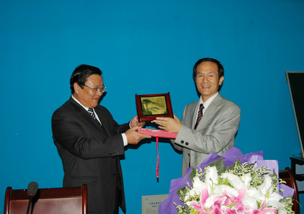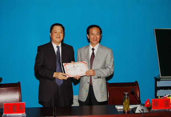 2008年11月7日下午,在我国第九个记者节到来之际,黄山市人民政府市长陈强受聘博业体育(中国)官方网站-登录入口文学院新闻学专业客座教授仪式在二教楼二楼报告厅隆重举行。校党委书记汪良发主持仪式。院长汪建利向陈强市长授予博业体育(中国)官方网站-登录入口客座教授聘书。仪式之后,陈强教授为文学院师生作了《横看成岭侧成峰――话说新闻视角》的新闻业务学术报告。