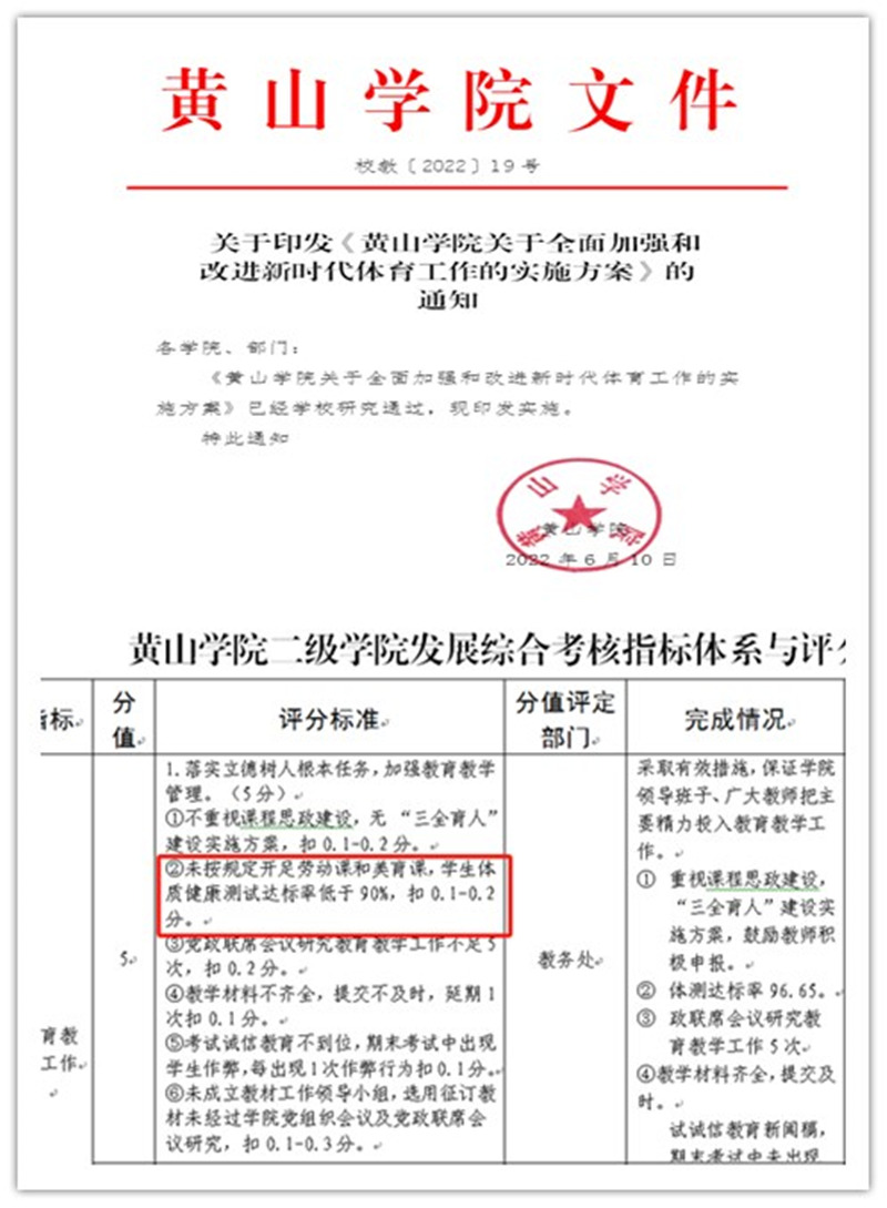 优化教育评价体系。以改革大学体育教育评价为突破,推进实施“课内外一体化”体育俱乐部制”教学模式,建立课堂教学、课外体育锻炼(乐跑)、学生体质健康测试和体育学科竞赛“四位一体”《大学体育》教学评价新模式,激发体育教学动力,出台《博业体育(中国)官方网站-登录入口关于全面加强和改进新时代学校体育工作的实施意见》,将体育工作纳入二级学院年度考核内容,推动体育工作常态化、规范化、系统化发展。