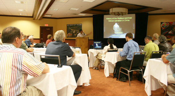 本次年会的主题是淡水龟鳖类的保护和生物学研究。经会议组织者安排,吕顺清博士第一个在会议上做题为“中国斑鳖保护行动的历史回顾”(History of the Rafetus swinhoei rescue operation in China)的学术报告。