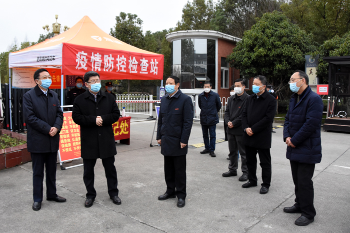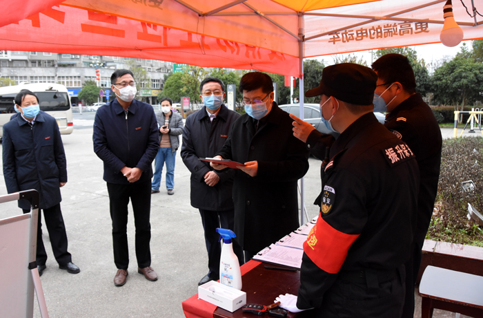 任泽锋一行先后来到横江校区校门安全监测岗、率水校区校门安全监测岗,校警务站、校医院,实地查看学校疫情防控工作落实情况,详细了解学校人员进出登记、车辆管控、体温检测、重点师生排查、防控物资储备、开学预案制定实施以及线上教学组织等相关情况。