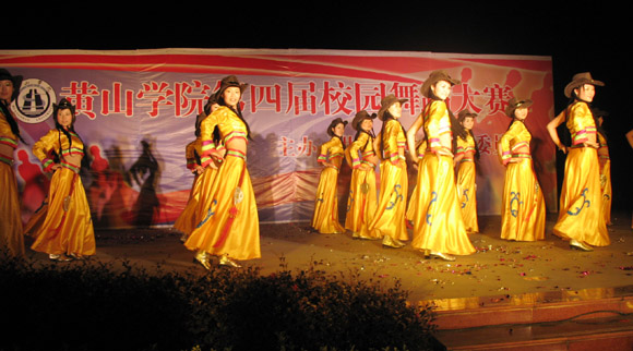 各院系舞蹈爱好者先后登台,用他们靓丽的舞姿、澎湃的激情,向全校师生展示了由他们自己精心编排的11个参赛节目,一曲曲欢快动感的旋律,把现场的气氛一次次地推向高潮。他们中既有校园内最为流行的街舞,又有充满着民族气息的藏族舞蹈;既有优雅传统的《青瓦白墙―恋徽州》,又有时代感非常强烈的拉丁现代舞。