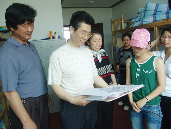 5月15日上午,学校党委副书记、艺术系联系领导李家祥在艺术系主任周筱华、总支书记余富钧的陪同下,风尘仆仆深入艺术系写生基地潜口看望在那里户外写生的07级美术班的同学们和指导教师。