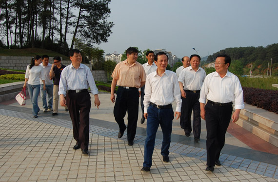 陈强一行对我校新校区优美的校园环境给予了充分肯定。