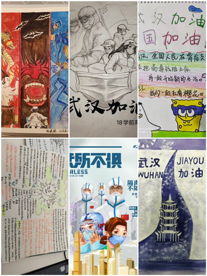 线上作品创作。团员青年以视频、文字、绘画、书法等多种形式展现疫情面前我校学子的担当与行动,作品内容包括为疫区加油,向白衣天使致敬短视频;分享身边的抗击疫情感人故事;全国驰援为武汉加油的感人瞬间;感恩父母传承大爱的亲情故事等各类形式多样的作品。